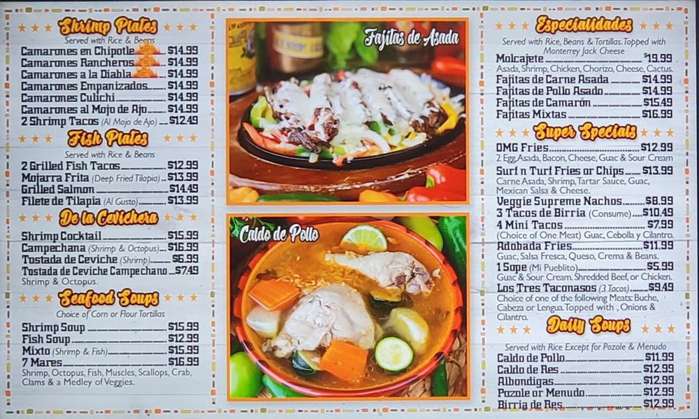 El Patron Traditional Mexican Grill, located in San Diego, offers a diverse menu with seafood, soups, desserts, and super specials. Known for their fresh and flavorful dishes, customers rave about the quality and taste. The seafood soups, such as the 7 Mares and Mixto, are popular choices with generous portions and a variety of fresh seafood options. Desserts like Churros and Tres Leches Cake are a sweet ending to a satisfying meal. Customers appreciate the friendly service, cleanliness, and variety of salsas available at the salsa bar. The Del Mar burrito and carne asada tacos stand out as crowd favorites, showcasing the restaurant's attention to quality and portion size. Whether dining in or taking out, El Patron Traditional Mexican Grill offers a delightful experience for Mexican food lovers.